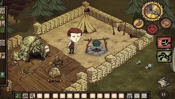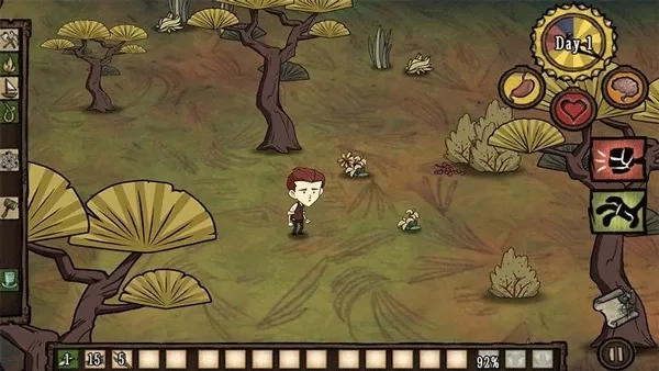 《饥荒生存》是一款模拟生存冒险类游戏,它以美漫风格为特色,拥有别具一格的简约卡通画风设计,玩家能够在广袤的荒野世界里自由探索。该游戏具备真实的模拟环境,搭配趣味十足的资源收集玩法,为玩家营造出紧张刺激的荒野生存体验。游戏场景设定在一座荒岛上,这里环境全新,生物与季节也全然陌生,玩家需设法适应此处生活,进而逃离荒岛。
