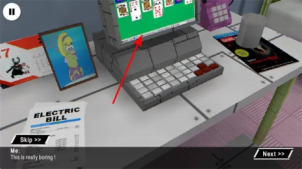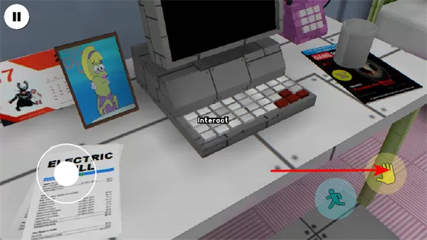 1、与场景物品互动,点击右侧的互动按钮,与桌上的电脑等物品进行交互,触发解谜剧情或获取隐藏线索。
