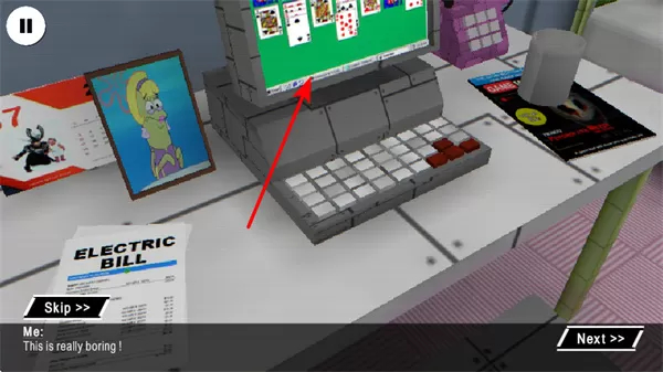 2、探索电脑内容,在电脑界面中查看显示的扑克牌游戏,分析其中可能蕴含的解谜信息,推进密室逃脱的进程。