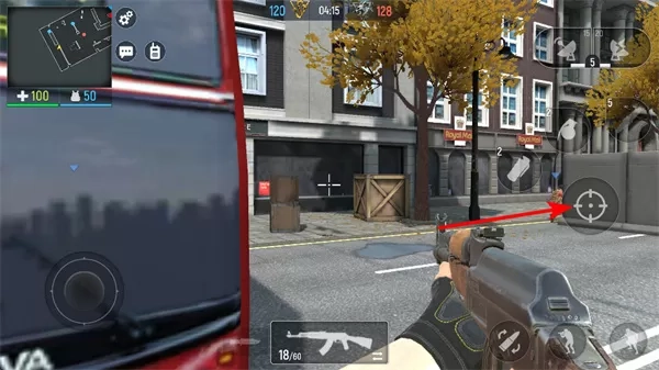 3、使用瞄准功能,点击右侧的瞄准按钮,开启瞄准模式,提升精准度,打击敌方目标。