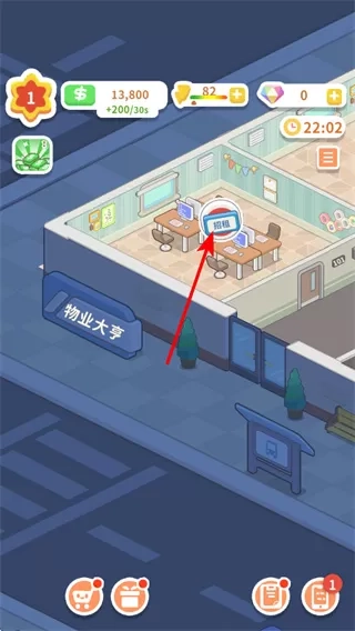 1、开启招租流程,点击办公室内的招租标识,进入租户选择界面,开始为办公室寻找合适的租户。