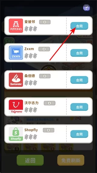 2、签订租户合同,在租户列表中选择爱彼邻,点击合同按钮,签订租赁协议,确定入驻办公室,获取收益。