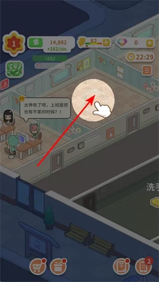 3、拓展办公区域,点击新的办公室空地,开始建设102办公室,扩大物业的经营规模,增加可出租的办公空间。