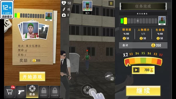 1、玩家在执行任务之前要选择好武器,发挥武器的优势,在战斗中可以更好的击杀目标人物。