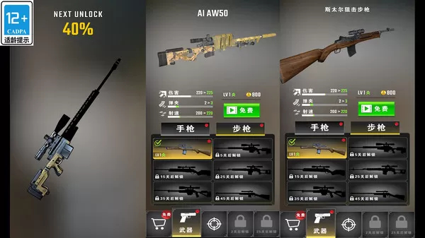 1. 我们提供多种专业狙击枪,玩家可通过完成任务解锁这些武器。对于高阶武器,更能够自定义配件,以此提高狙击效率与隐蔽性能。
