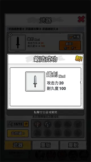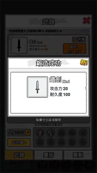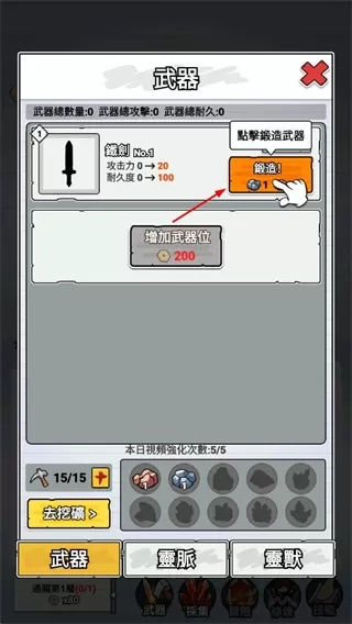 1. 在武器界面进行武器铸造,以此提高攻击力与耐久度,为战斗打下基础。