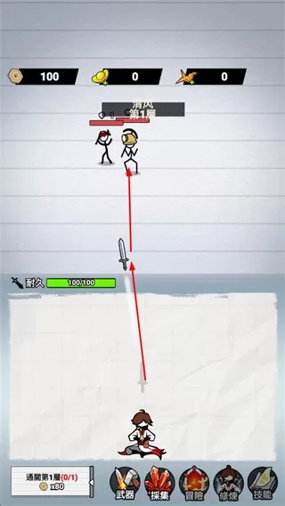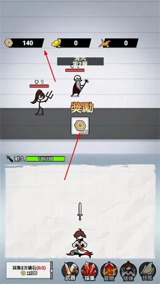 3、战斗胜利后领取奖励,积累资源用于武器升级和后续冒险。