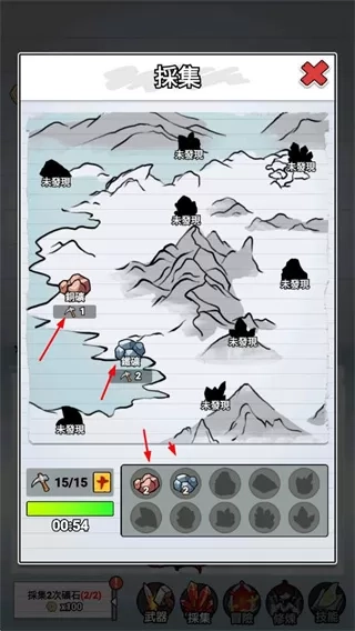 4、在采集界面选择地图区域采集资源,为武器铸造和角色发展提供材料支持。