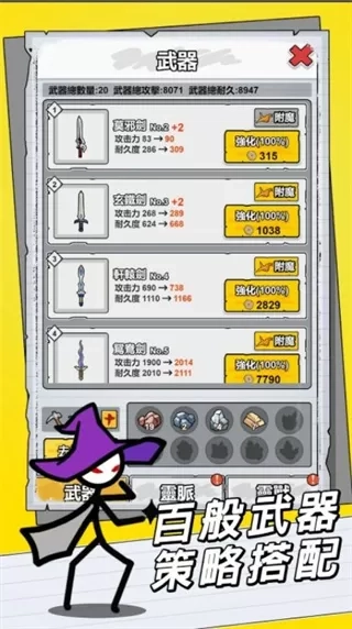 基于火柴人形象开启对战,要依据获取的武功绝学规划对战策略,依照对手实际状况灵活调整战术,借助神兵利刃的优势提升战力,使策略布局成为赢得对战的关键所在。