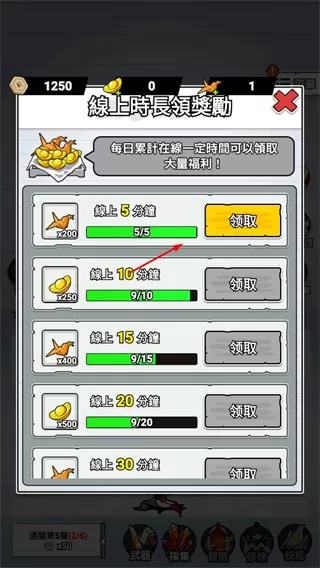 3、获取线上时长奖励,积攒资源以用于武器强化与角色发展。
