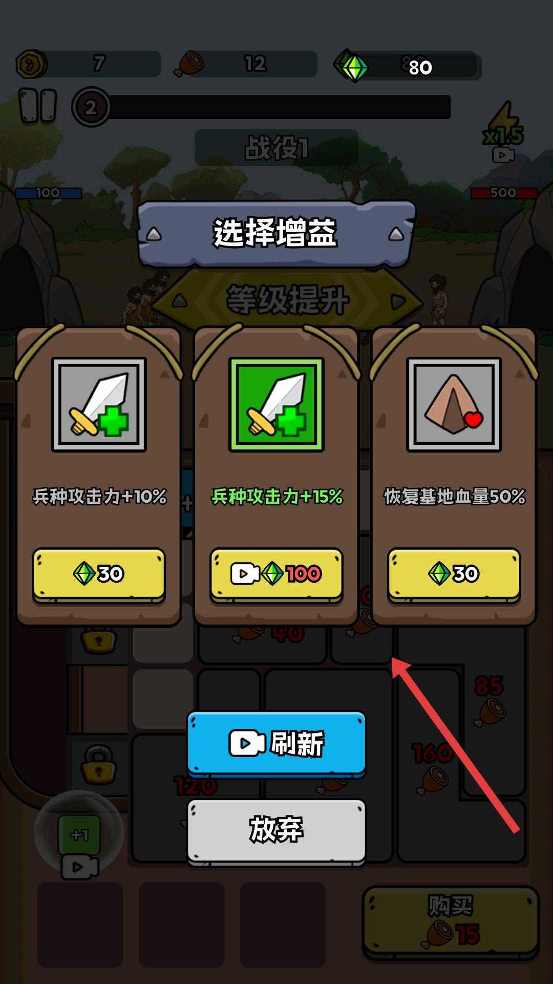 4、等级提升时选择增益效果,如提升兵种攻击力或恢复基地血量,增强整体战斗能力。