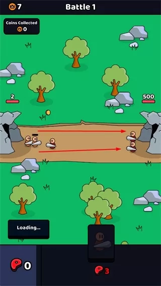 1. 在战斗场景里,指挥穴居人部队与敌方展开战斗,并收集金币,此乃积累资源的关键举措。