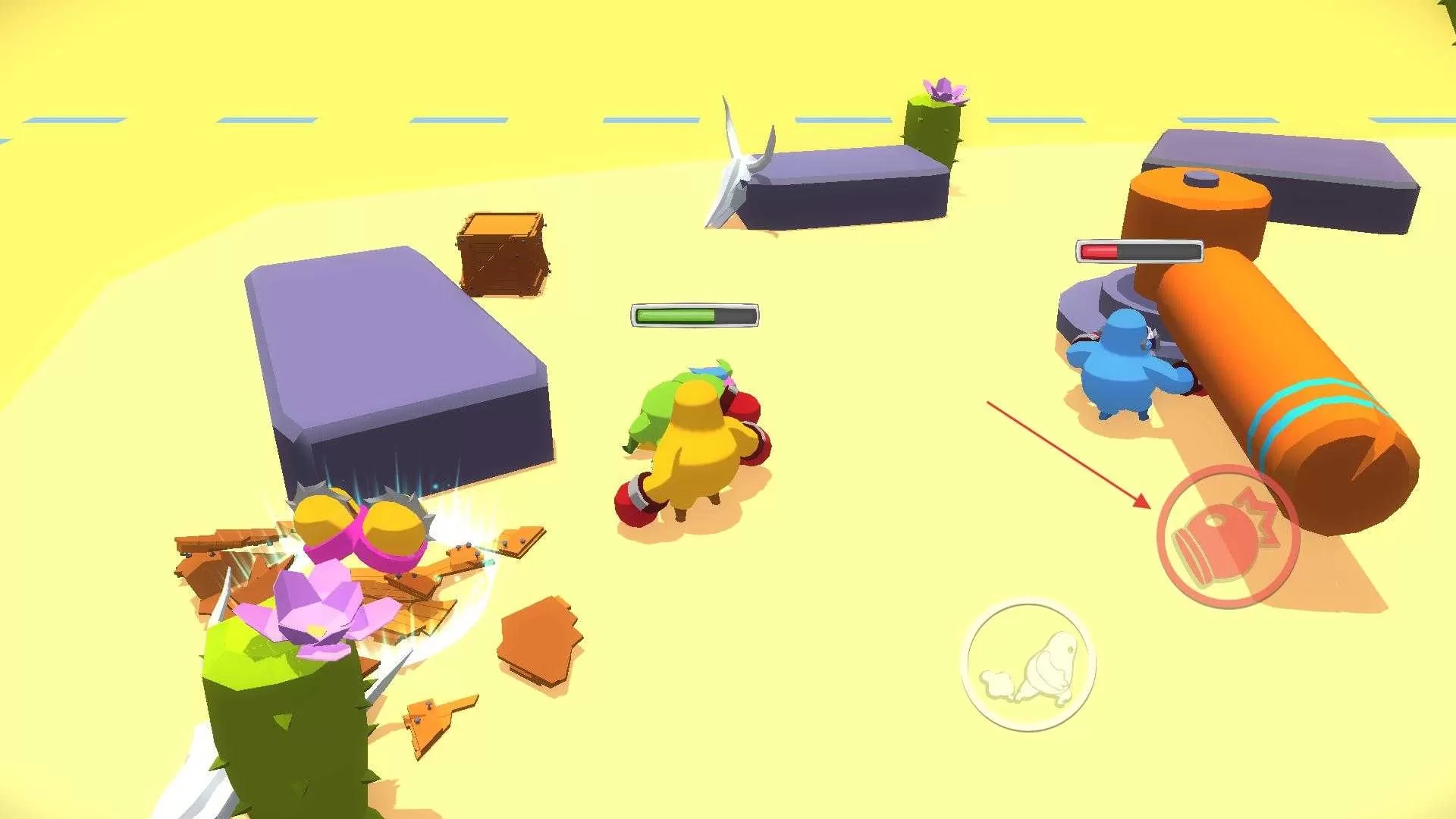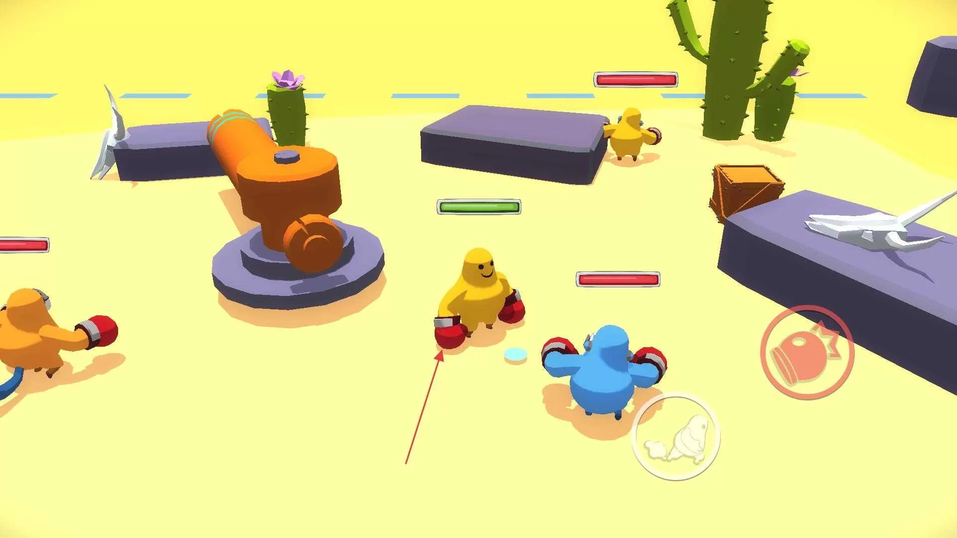 2、踏入游戏对战场景,操控角色于场景里穿梭,与不同颜色的角色碰面,凭借角色的拳击技能,与对手开启战斗。