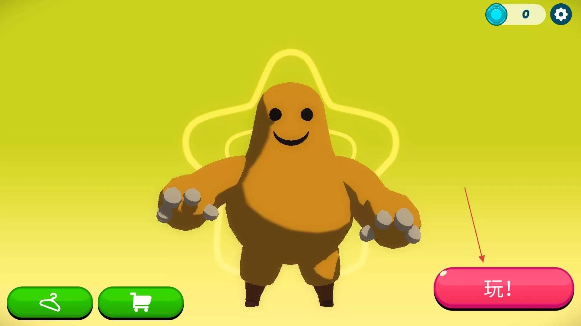 1、打开游戏,进入启动页面,有可爱的角色形象,点击玩按钮,即可进入游戏对战场景。