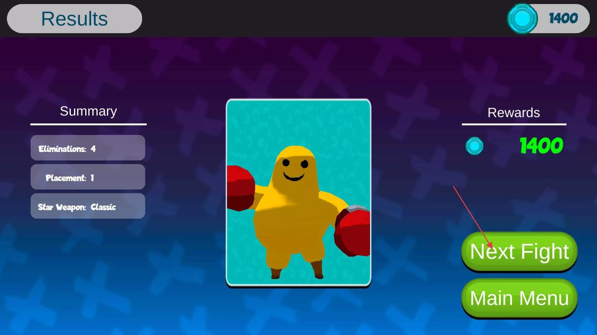 4、战斗成功结束后,会弹出结算界面,此界面将展示战斗中的淘汰数、排名等相关情况,以及玩家获得的奖励。玩家点击“下一场战斗”按钮,即可继续游戏。