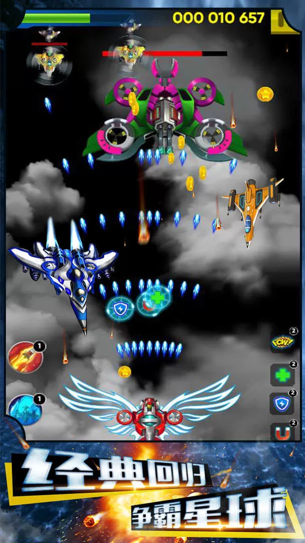 2. 驾驶战机,巧妙闪避来袭子弹,同时歼灭敌人,努力在这场星球战争中存活下来。
