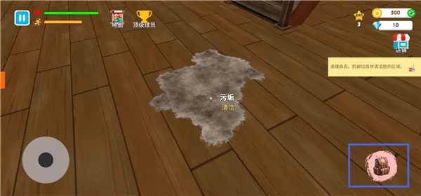 10、来到污垢处,点击右下角背包。
