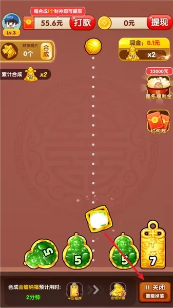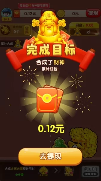 3、惊喜奖励:合成出最高等级的财神后,玩家将获得额外的惊喜奖励。