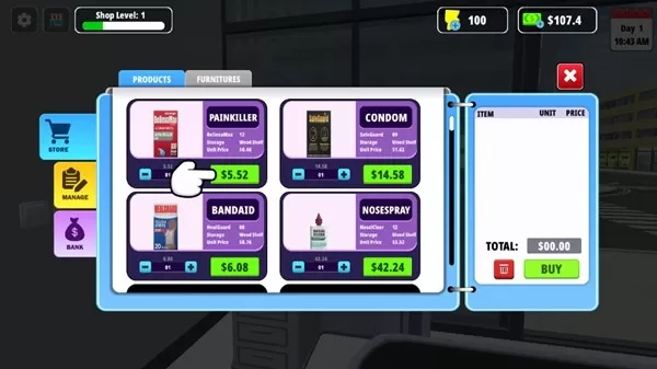 通过积累经营收益,可升级药店面积、增加货架数量、引入自动收银系统等,解锁更高级的进货渠道与药品品类,逐步提升药店的规模与行业影响力。