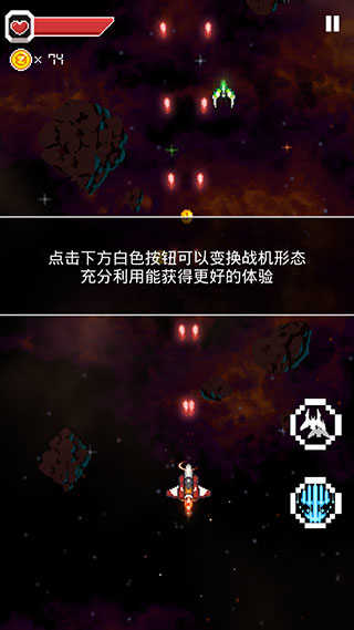 5、点击下方白色按钮,即可变换战机形态,充分利用这一功能,能获得更好的体验。