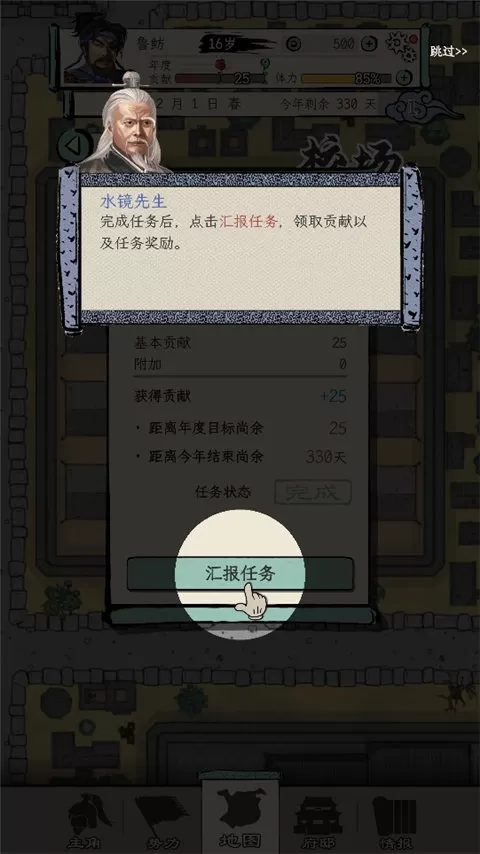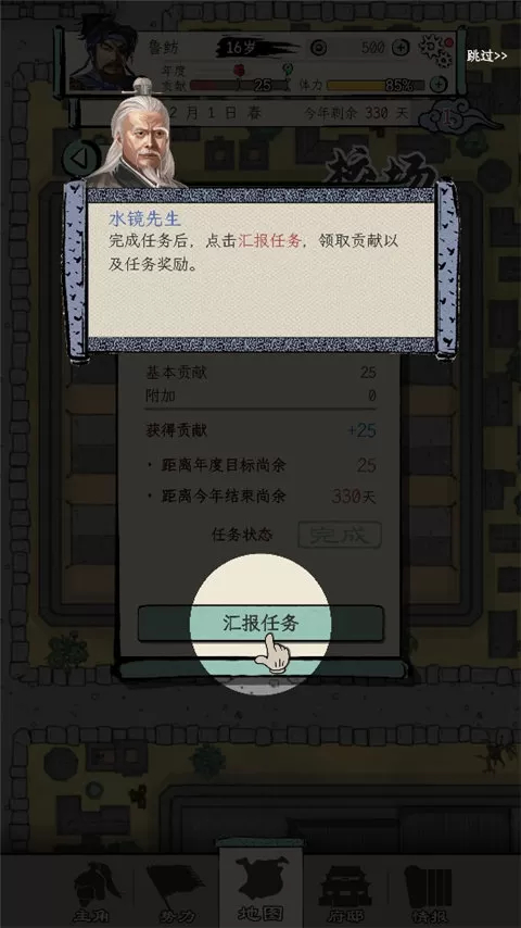 18、完成任务后,点击汇报任务,领取贡献以及其他奖励。