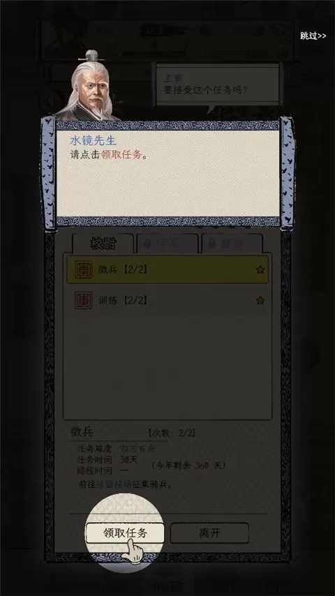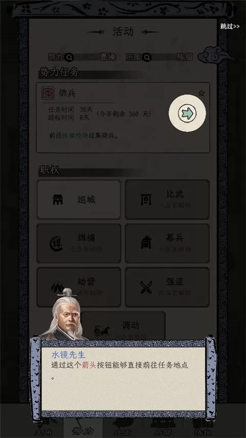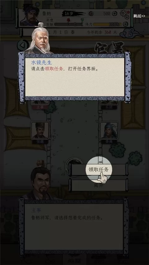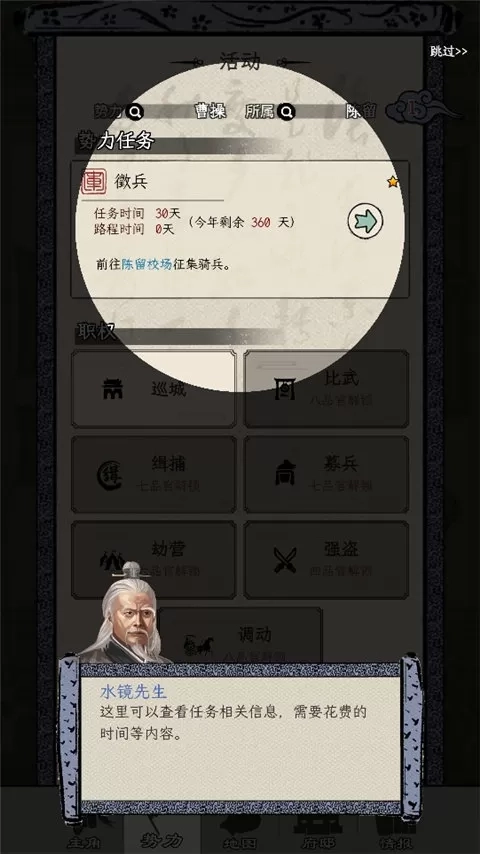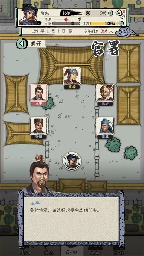 5、同僚篇1:同僚是本游戏极为关键的要素之一,缺了同僚,游戏几乎无法进行。若想让同势力武将加入,需与其友好度达到60,在官邸与之对话,满足其需求即可。执行任务时,同僚能够出列协助。值得注意的是,5品演义任务必须每次有3位同僚协助才能完成。若担任太守,每年都可选择将同僚召集至自己所在的城池提供助力。