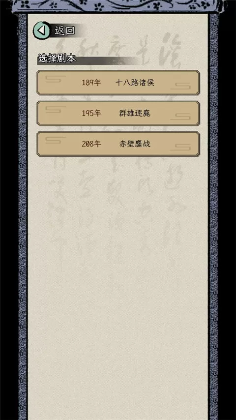 3、选择你想要的剧本,如十八路诸侯剧本,开始游戏;