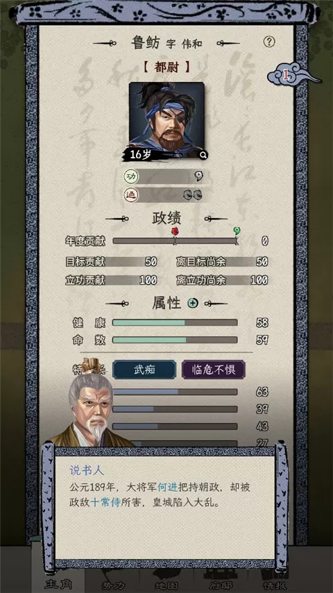 接着攒一攒各类资源宝物,随意选几个乙品文官给他们送礼(文官可不能揍……),等友好度达到60就直接成为同僚了。与此同时,学习文书指导。除了打算拉拢为同僚的文官,其他人一概不送,像那种属性超强但很快就去世的……比如曹操,礼送完了人也没了……