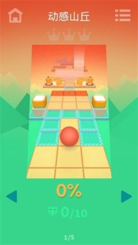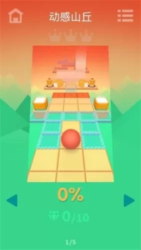 1、首关“云”的场景下,没有太难的拐角和过多的障物,沿着直线载球地面跑,不要碰到两侧凸起的方块,达成满钻通关较易,此图景只需一星就达标。