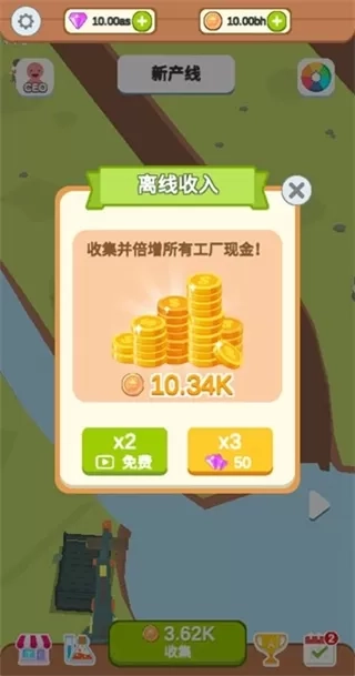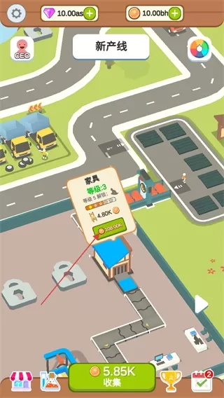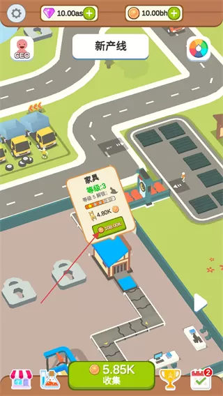 3、积累足够金币后,留意新产线提示,点击解锁新产线,扩大生产规模。
