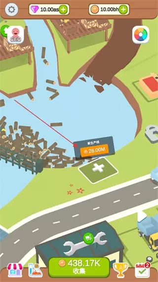 地图中隐藏不同产量的伐木点,随经营进度解锁新区域,菜单可标记高价值木材分布,助力及时发现并抢占优质伐木资源。