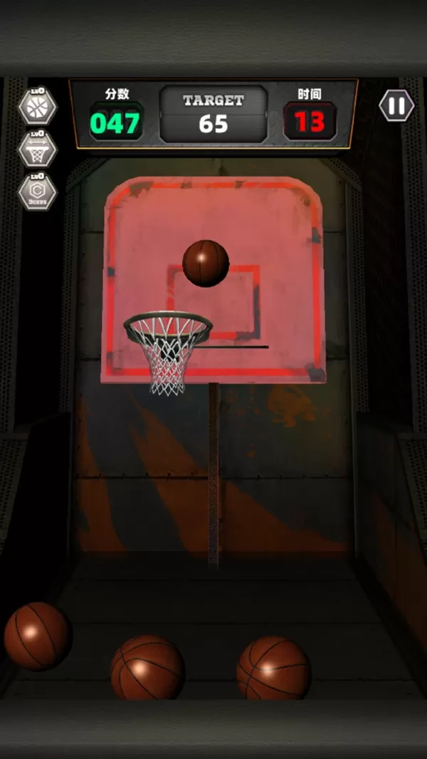 3、除了基础关卡,还可解锁挑战模式。此模式难度颇大,专为追求极致、渴望突破自我投篮极限的玩家而设,玩家能在此尽情挑战自身投篮的极限。