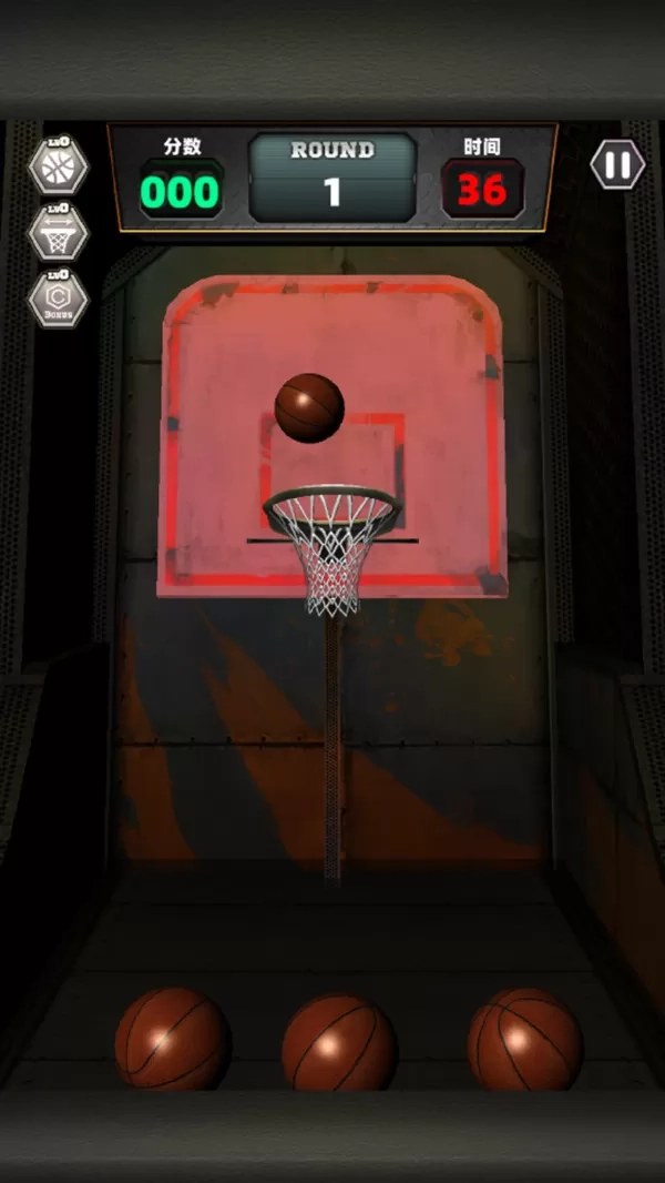 2、投篮反馈即时呈现,球进篮筐会触发清脆音效与得分动画,未进则显示偏差方向,帮助玩家调整操作。