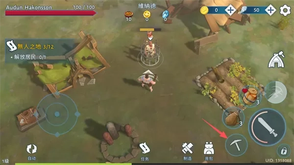 6、靠近好,点击屏幕右下角的“石镐”,解放居民。