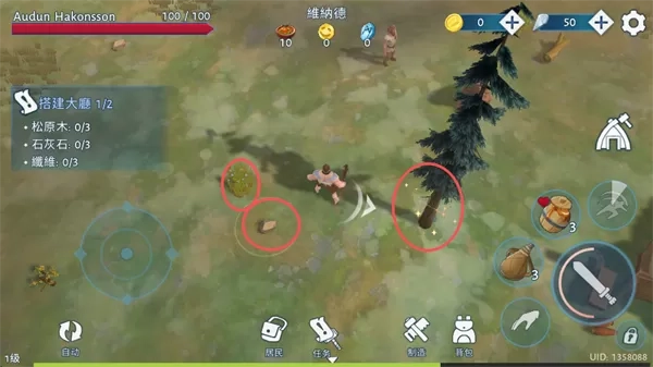 文兰故事游戏中玩家需要砍伐树木、开采矿石和猎杀动物等方式收集资源,维持维京部落的发展。玩家还需要利用物资打造斧头、剑、弓箭等武器,和招募的居民一起与强盗战斗,守护部落的安全。此外,文兰故事游戏还具有如雪林、雪原等多种地形,并且在特定的地点还会触发更有趣的剧情事件!