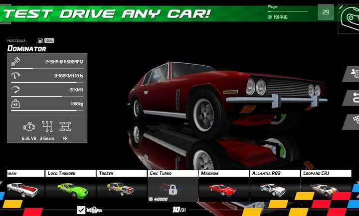 通过系列赛事解锁隐藏车辆与改装零件,逐步提升车手等级。