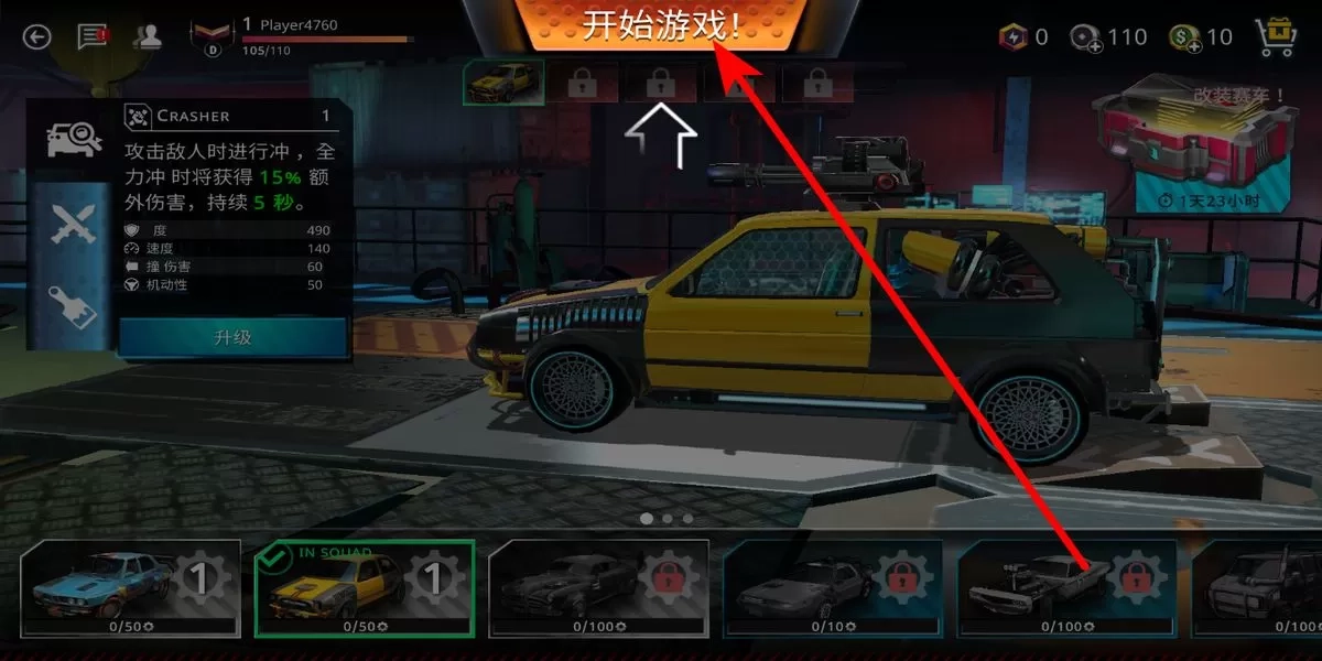 1. 打开游戏,在界面上方找到“开始游戏”按钮,点击此按钮,就能进入匹配队列,等待系统为你匹配其他玩家开启对战。当匹配成功后,操控车辆与其他玩家展开战斗。