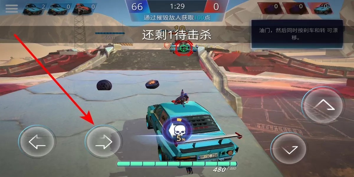 3、战斗期间,一旦敌人车辆进入武器射程,游戏界面便会显示瞄准提示。这时点击射击按钮,车辆配备的武器就会朝着敌人车辆开火,对其造成伤害。