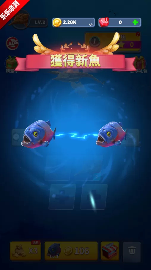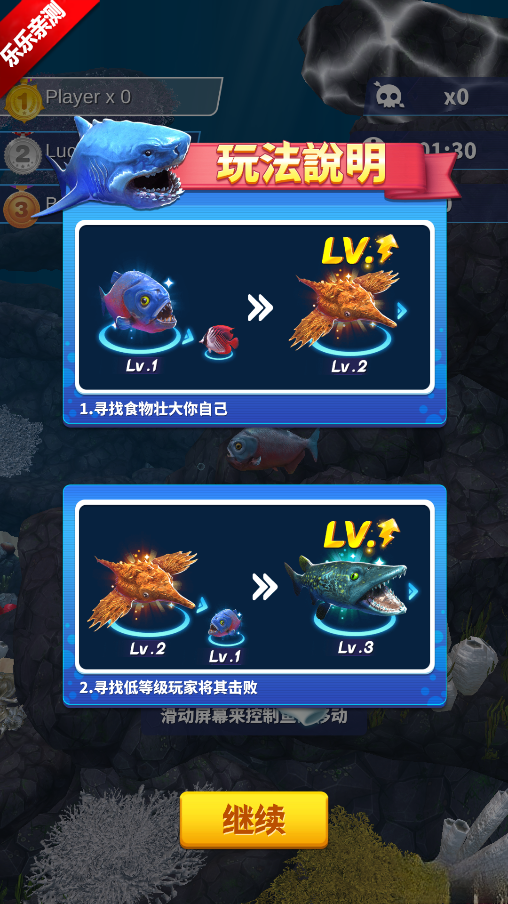 目标:在规定时间内尽可能多地吞噬食物,提升体型与等级,解锁新鱼类或技能。