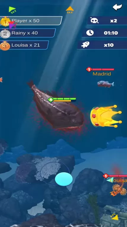 目标:于生存竞争里成为最终存活的鱼类,亦或是借助团队协作达成挑战任务。