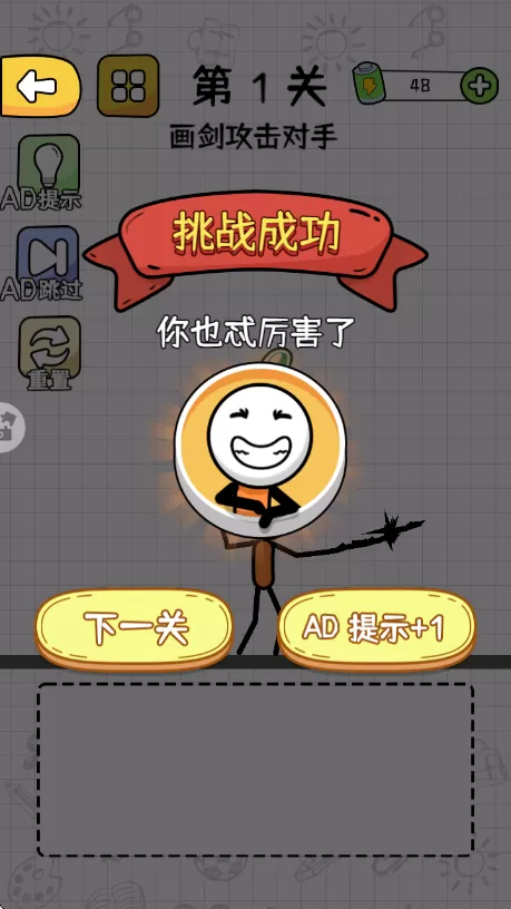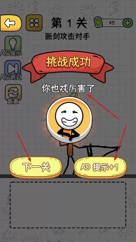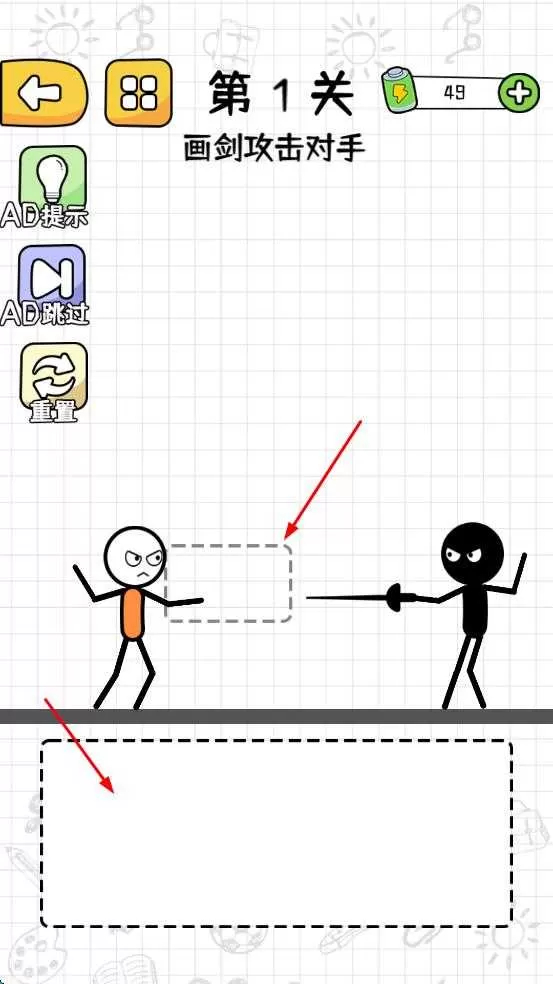 2、在关卡内,依照提示进行画剑操作。首先尝试自主解开谜题,要是画错了,点击“重置”按钮便可重新开始,努力达成三星通关。