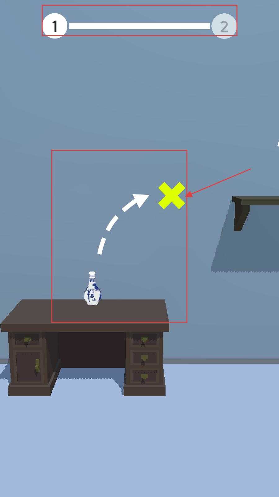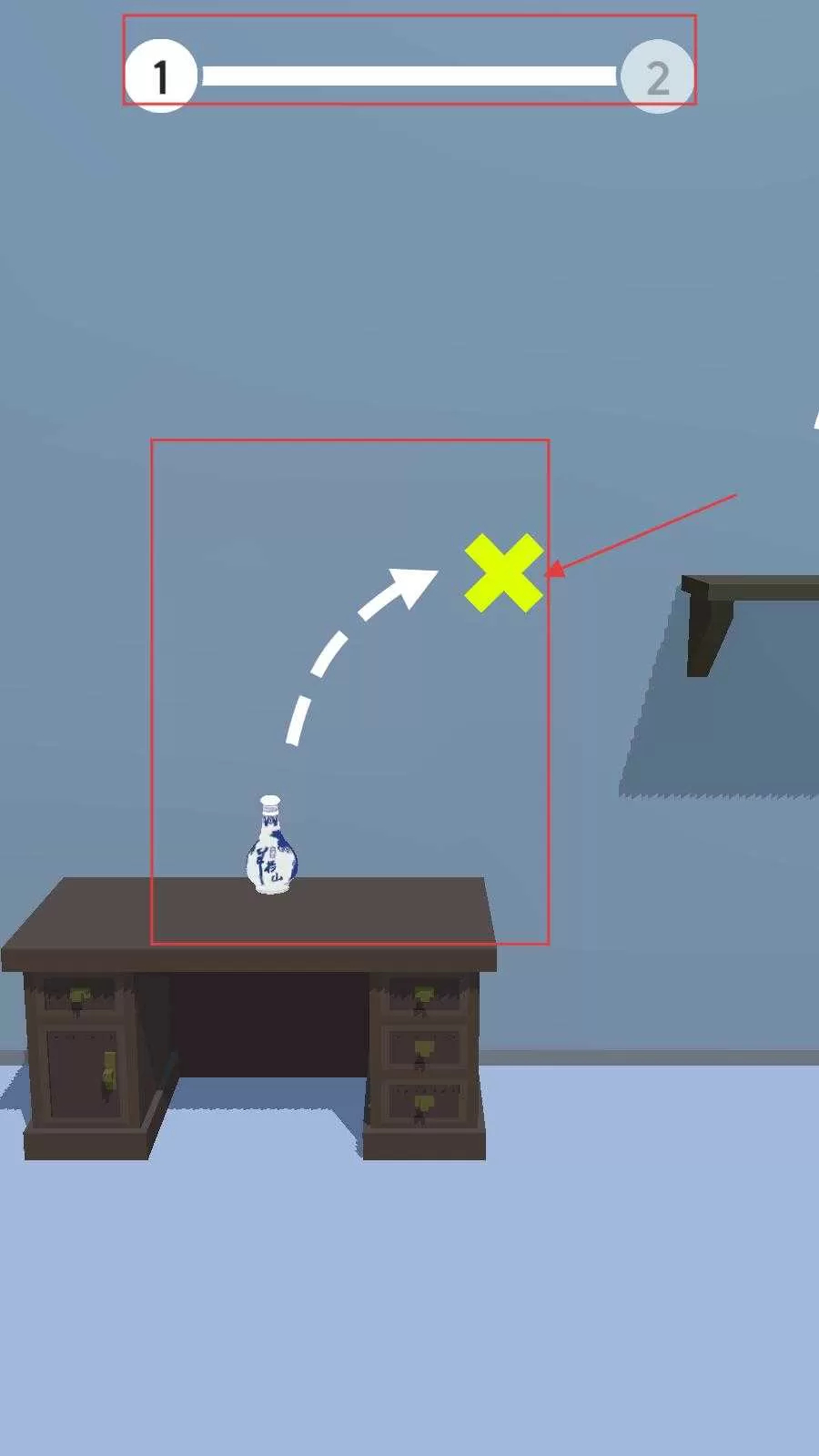 3、进入游戏后,操作方式为将瓶子投向目标位置。在此过程中,要把握好投掷的角度与力度,并依据提示的轨迹来进行投掷,以此推进关卡进度。