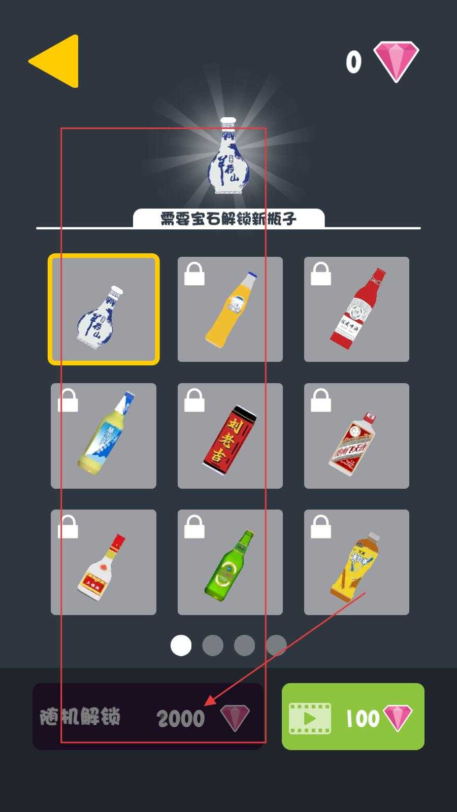 2、玩家能够解锁各式各样的瓶子,像青花瓷瓶、饮料瓶之类。消耗宝石便能随机解锁全新瓶子,每个瓶子的外观与属性都各有不同。