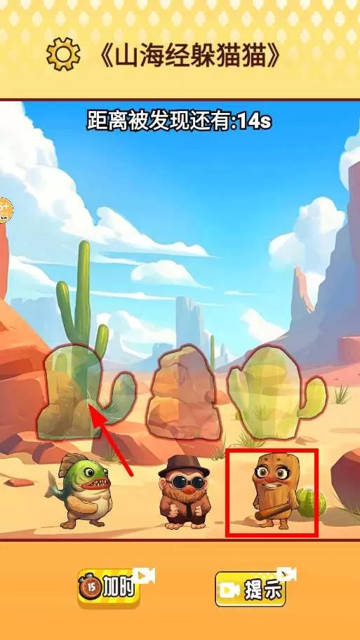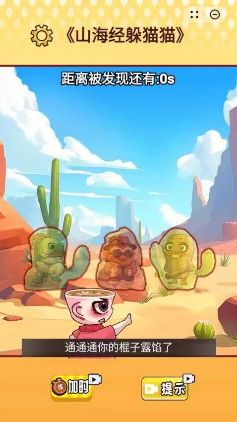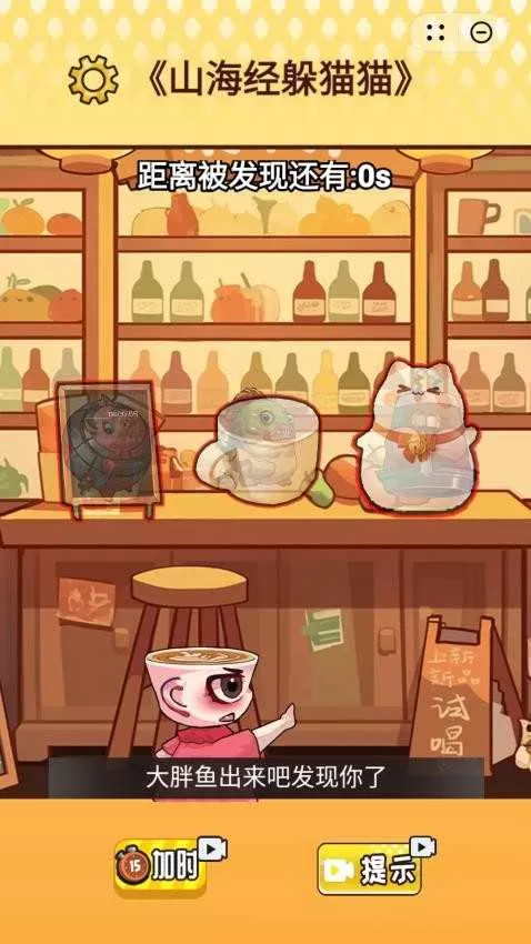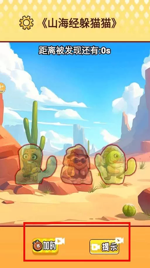 2、当倒计时归零时,若角色未成功隐藏好,会暴露在场景內,此时可点击加时或提示按钮,尝试获取更多时间或隐藏线索。