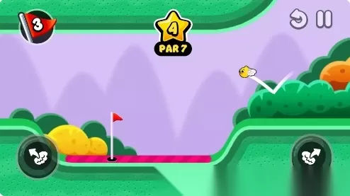 1. 核心玩法是将小鸟造型的高尔夫球通过翅膀拍打飞跃球场并成功进入杆洞。
