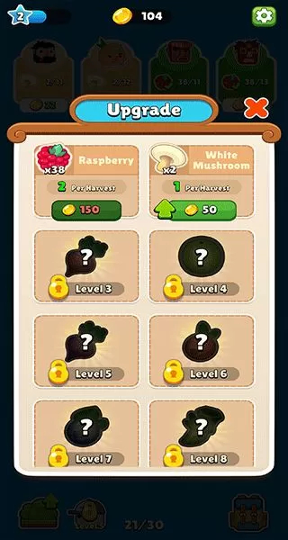 1、可以花费金币升级树莓等作物,升级后能提升每次收获的收益,助力农场发展。