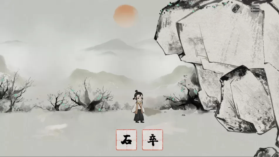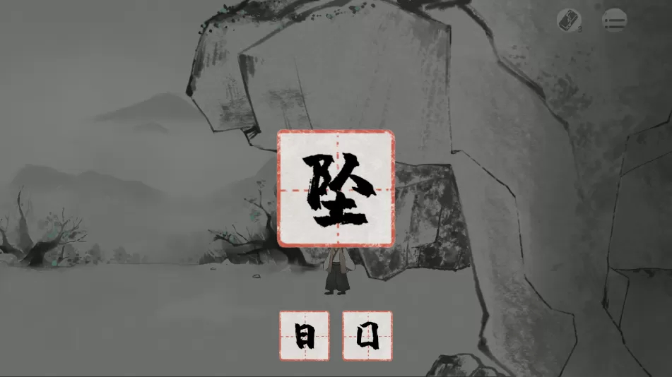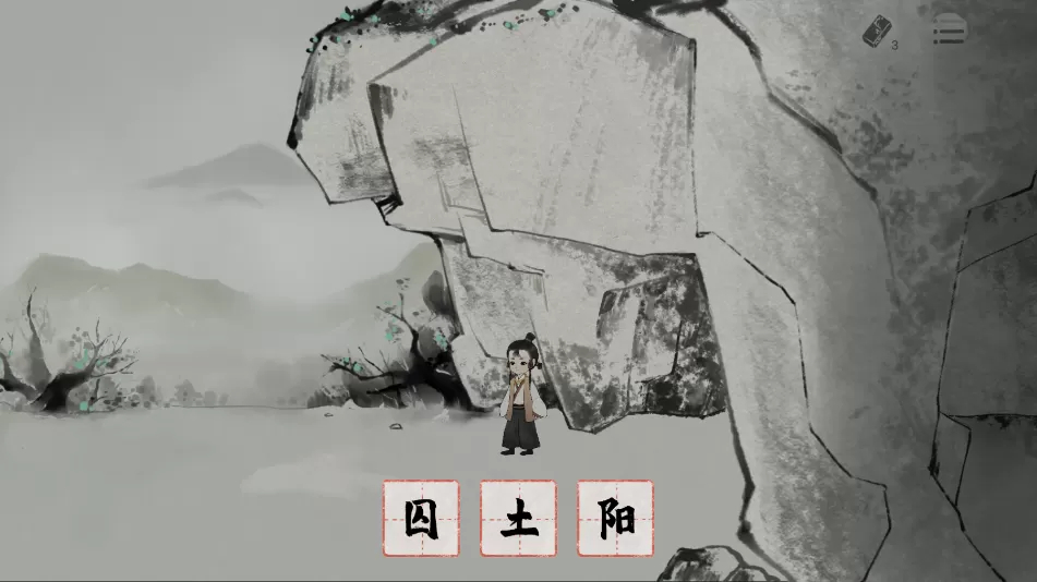 6、进入之后,能瞧见一名囚犯,将其收集后会获得一个“囚”字。接着出来向左走,来到土堆跟前,收集土,再抬头仰望,收集太阳。