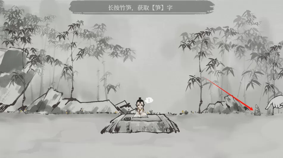 2、随后点击右侧的竹笋,获取“笋”字,依照提示把“笋”字从中间分开。