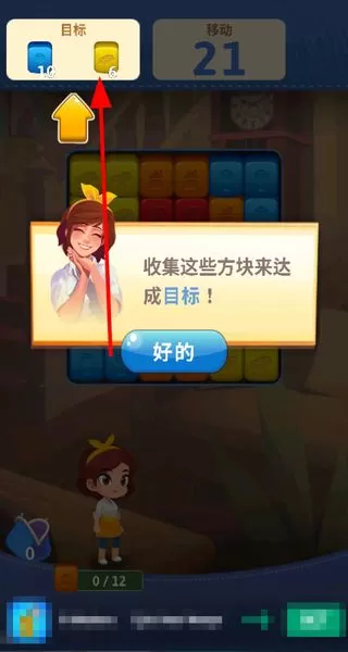 4、上方会显示目标方块,收集足够数量的目标方块就能达成目标,推动游戏进程。