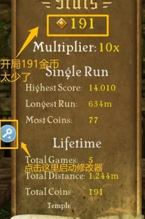 3、进入游戏后,此时我们能看到拥有的金币数量仅为191个。接下来,我们首先点击屏幕左侧的八门神器图标,然后在搜索框中输入191 。